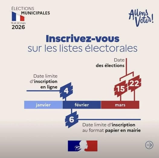 ACPC vous invite à vérifier votre inscription sur les listes électorales et si ce n’est pas le cas à le faire avant le 6 février : https://www.elections.interieur.gouv.fr/mes-demarches/je-verifie-ma-situation-electorale
