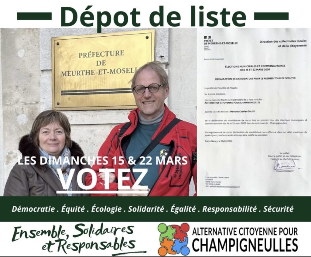 Ce lundi 16 février notre liste en vue des municipales a été déposée. 31 noms pour la ville et 9 pour la CCBP. Le 15 mars il faudra voter ACPC !